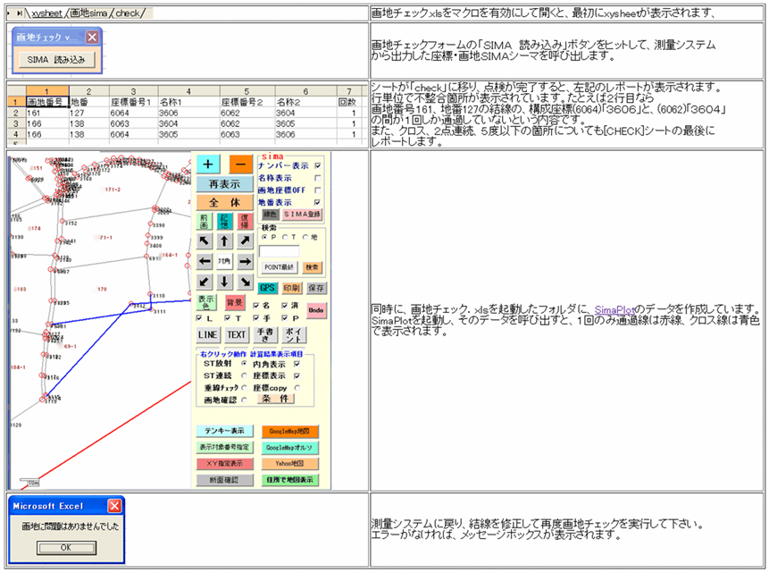 | 画地チェック.XLS | 画地入りSIMAから整合性を確認し、結果を図示する |