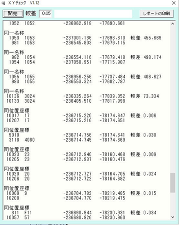| SIMAファイルから同一名称、同位置座標をチェックします | |||||||||||||||||||||||